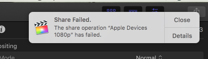 I have been using Final Cut Pro X for many years, but today I am having a problem that is giving me a headache. When I try to share a video, at the end of the rendering I get a message saying: